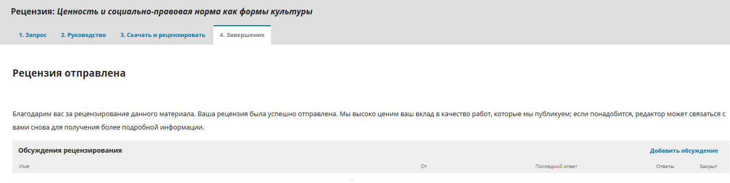 Переход на данный этап означает, что рецензия успешно отправлена.