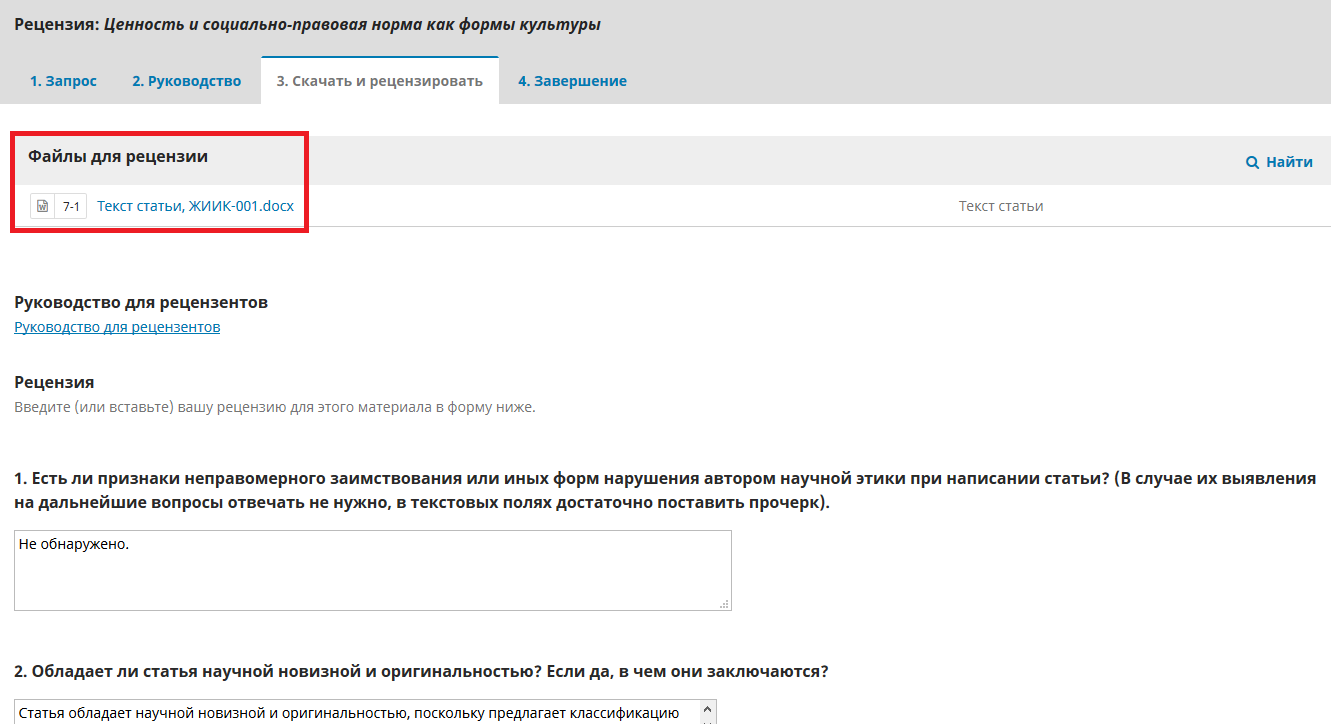 Если вы дали согласие написать отзыв, вы переходите к ознакомлению с руководством для рецензентов. Пожалуйста, внимательно прочитайте его, а затем нажмите «Перейти к шагу № 3».