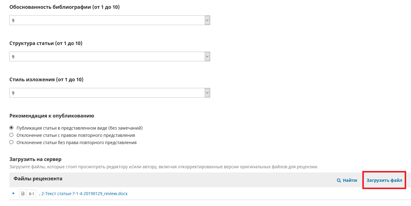 • Поле «Рекомендация» является частью редакционного процесса в целом. Редакция имеет право изменить рекомендацию при принятии окончательного решения о публикации статьи.